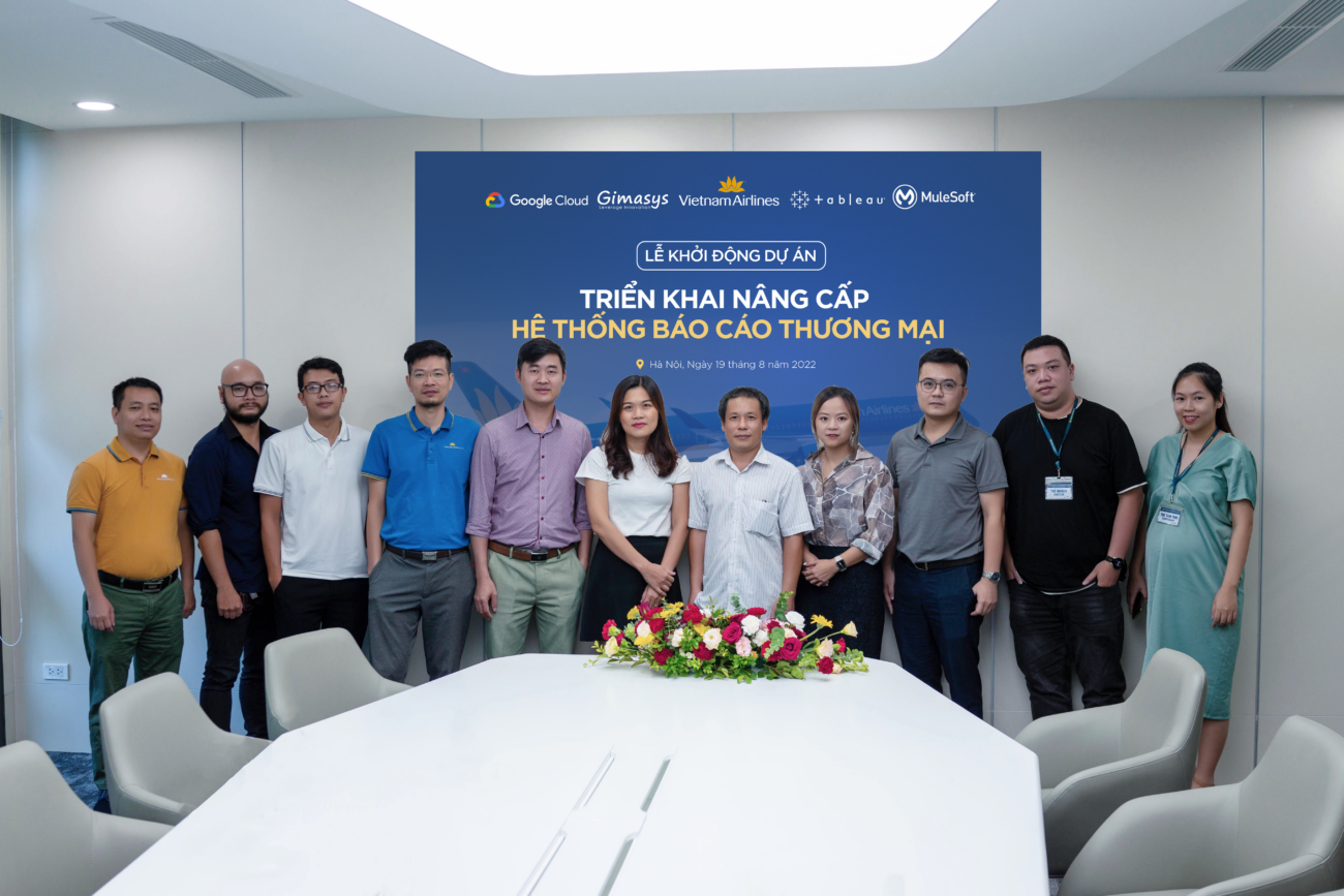Ngày 19/8 vừa qua, tại trụ sở chính của TCT Hàng không Việt Nam đã diễn ra lễ khởi động dự án “Triển khai hệ thống báo cáo thương mại cho VietnamAirlines” với đối tác triển khai Gimasys cùng các thương hiệu công nghệ lớn trên Thế giới: Google, Tableau và MuleSoft.