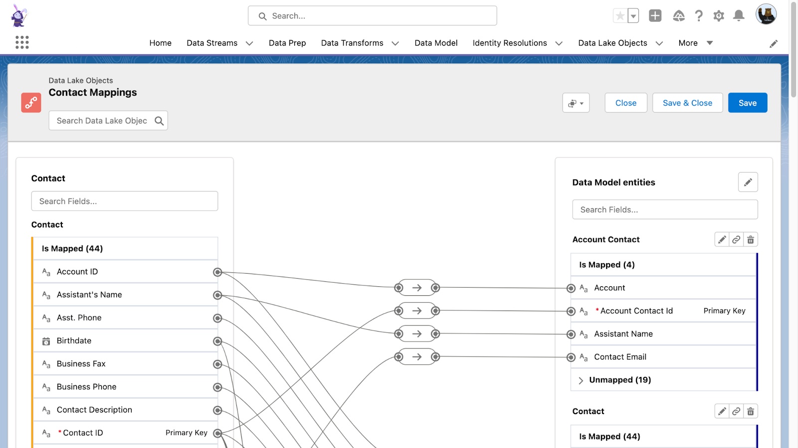 Đầu tiên, các dữ liệu được tập hợp toàn bộ trên Data Cloud. Các kết nối được tích hợp sẵn giúp việc thu thập dữ liệu từ mọi kênh trở nên dễ dàng hơn. Các dữ liệu bao gồm: luồng dữ liệu trực tiếp, dữ liệu đang phát trực tiếp từ web hay di động, dữ liệu được đưa vào từ các hệ thống bên ngoài thông qua việc tích hợp các API với MuleSoft.